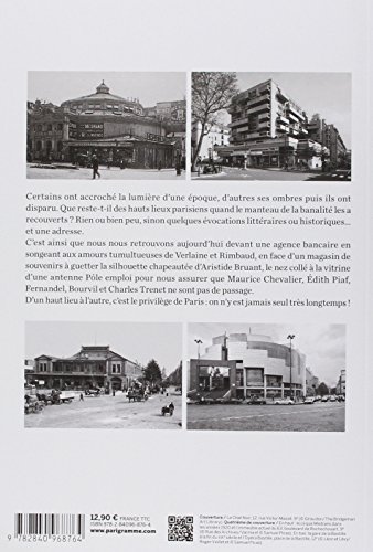 Souvenirs de Paris, hauts lieux disparus Francois Legrand pdf español - Souvenirs de Paris, hauts lieux disparus a été écrit par Francois Legrand qui connu comme un auteur et ont écrit beaucoup de livres intéressants avec une grande narration. Souvenirs de Paris, hauts lieux disparus a été l'un des livres de populer sur 2016. Il contient 143 pages et disponible sur format . Ce livre a été très surpris en raison de sa note rating et a obtenu environ avis des utilisateurs. Donc, après avoir terminé la lecture de ce livre, je recommande aux lecteurs de ne pas sous-estimer ce grand livre. Vous devez prendre Souvenirs de Paris, hauts lieux disparus que votre liste de lecture ou vous serez regretter parce que vous ne l'avez pas lu encore dans votre vie.Rang parmi les ventes Amazon: #103280 dans LivresMarque: ParigrammePublié le: 2013-10-03Sorti le: 2013-10-03Langue d'origine: FrançaisDimensions: 9.49" h x .59" l x 6.54" L, Reliure: Broché143 pagesPrésentation de l'éditeurLes hauts lieux auxquels s'accroche une part de l'histoire et de la légende de Paris, nous en connaissons beaucoup pour en avoir lu les noms au fil d'un roman, pour les avoir vus sur un tableau ou sur une photographie ancienne... mais qu'en savons-nous exactement ? Où étaient-ils ? Que représentaient-ils ? Quand ont-ils disparu ? Qu'est-ce qui les a remplacés ? Dans ce florilège, on ne s'étonnera pas de trouver des cafés, premiers refuges de la sociabilité parisienne (La Nouvelle-Athènes des Impressionnistes, le Rat mort où Rimbaud planta un couteau dans la cuisse de Verlaine, le Café des Artistes du boulevard du Temple, le Certà et le Cyrano des surréalistes, le Capoulade des étudiants du Quartier latin...), mais aussi des cabarets et des music-halls (le Chat noir, le Ciel et l'Enfer, La Taverne des Truands, Pacra, l'ABC...) des boîtes (le Jockey des années folles de Montparnasse) des bordels (le Sphinx), des cirques (Medrano), des librairies (La Joie de lire), des restaurants ( le Café Anglais, la Maison Dorée, le Café Riche...), des théâtres (le Vaudeville, l'Ambigu, l'Eden... ), des bals (Bullier, Tabarin...), des sièges de journaux (l'Huma, le Figaro...) une piscine (Deligny), des prisons (Sainte-Pélagie, Saint-Lazare, Cherche-Midi...), des cinémas (Gaumont Palace), des parcs d'attractions (Luna Park, Magic city...)... Chaque site fait l'objet d'une double page confrontant une photographie ancienne et une autre actuelle. Vis-à-vis souvent cruel, illustrant le temps qui passe, le temps qui efface, noyant sous des architectures anonymes et des devantures sans âme jusqu'à la mémoire des hauts lieux de Paris.